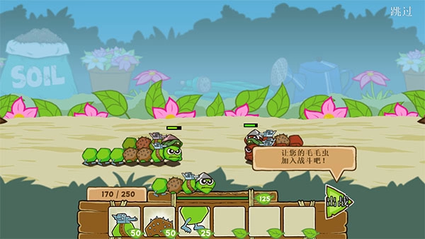 3、本关的敌方毛毛虫会变得很强大,先利用毛毛虫试探敌人有多强大和它们的新技能。