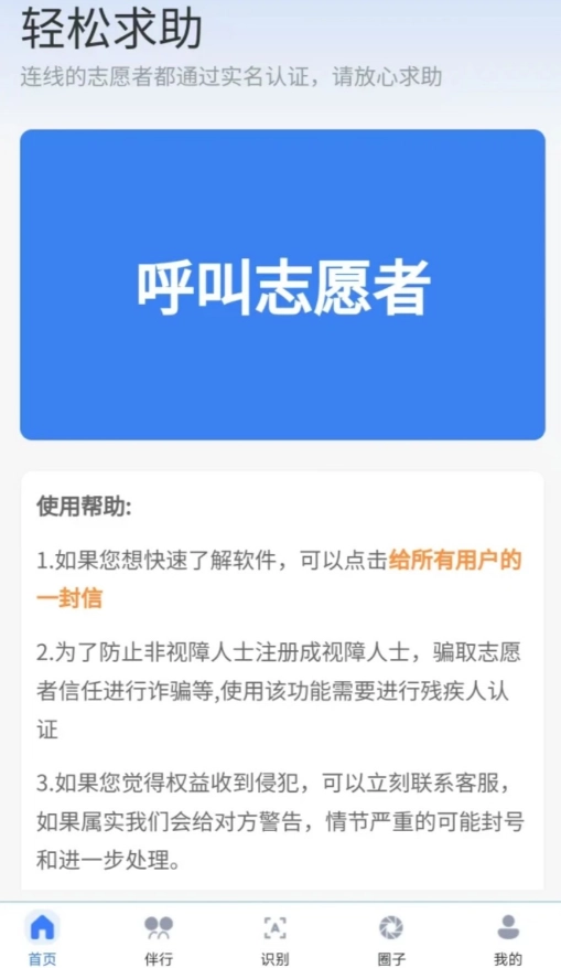 就是帮助视障人士呼叫志愿者来帮助自己的!