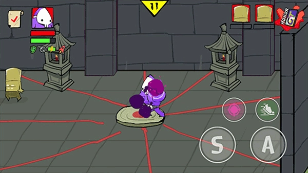 2、游戏界面左侧区域用于操控角色移动,右侧的A键对应轻拳攻击,S键对应重拳攻击,而带有鞋子图案的按钮则是疾跑功能。