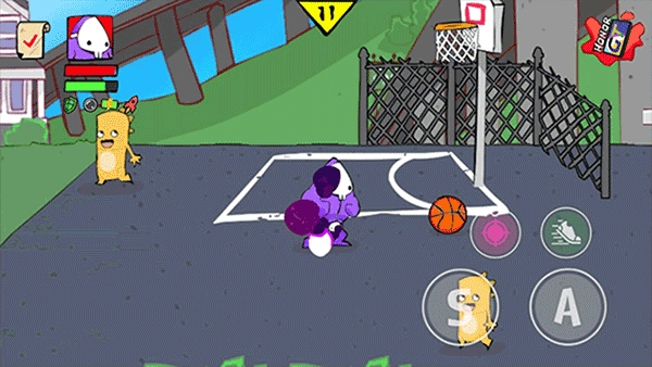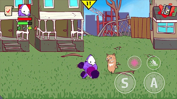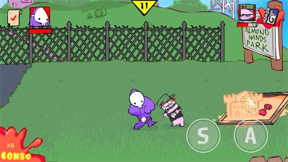 2、趣味卡通的游戏画风,搭配横版街机格斗玩法,趣味满满;指尖轻松操作即可实现连招,真实打击感直接拉满