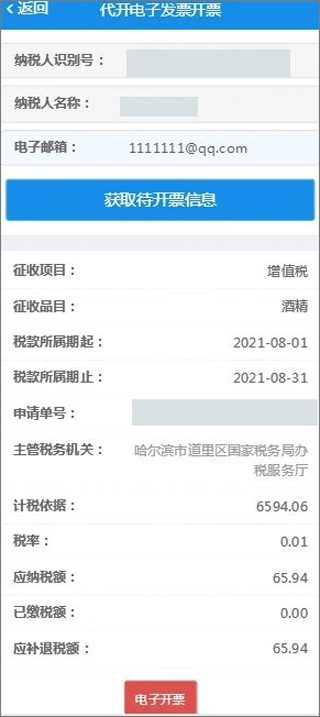 10、完成缴款后,纳税人可通过电子税务局App中的【代开电子普通发票查询】功能,点击【获取发票】按钮来获取已开具的增值税电子普通发票;也可以登录国家税务总局全国增值税发票查验平台(https://inv-veri.chinatax.gov.cn/),自行查看或打印该发票。