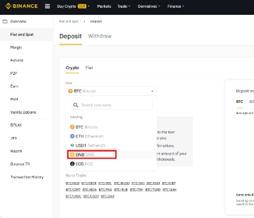 选择需要存入的加密货币。