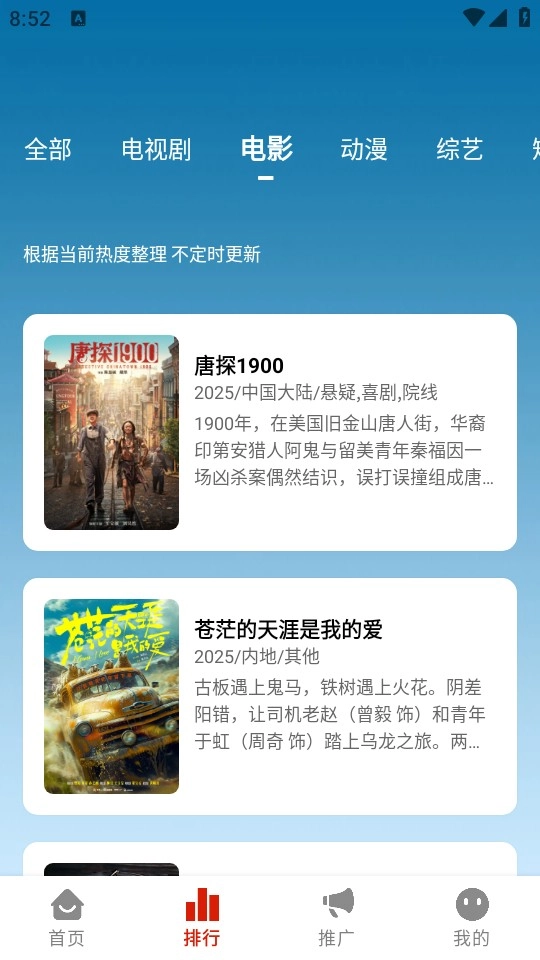 更有排行榜功能,最新最热门影视内容一网打尽。