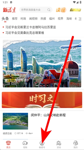 打开新福建,点击底下中间福建号。