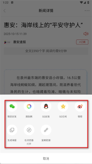 在分享选项里,你可以挑选微信好友、朋友圈这类平台来分享新闻。