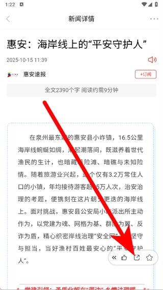 进入阅读页面后,点击右下角的分享按钮,接着就会弹出分享选项。