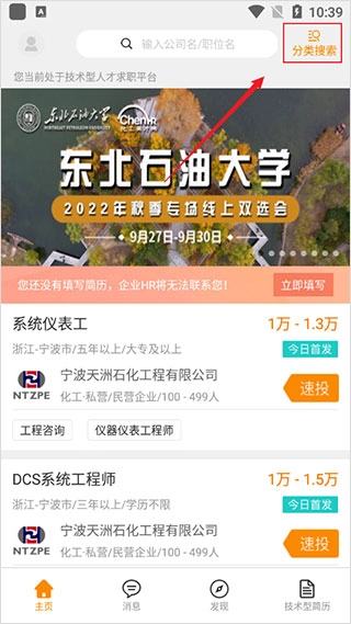 7、将所有简历内容进行完善之后就可以游览公司开始投简历了。