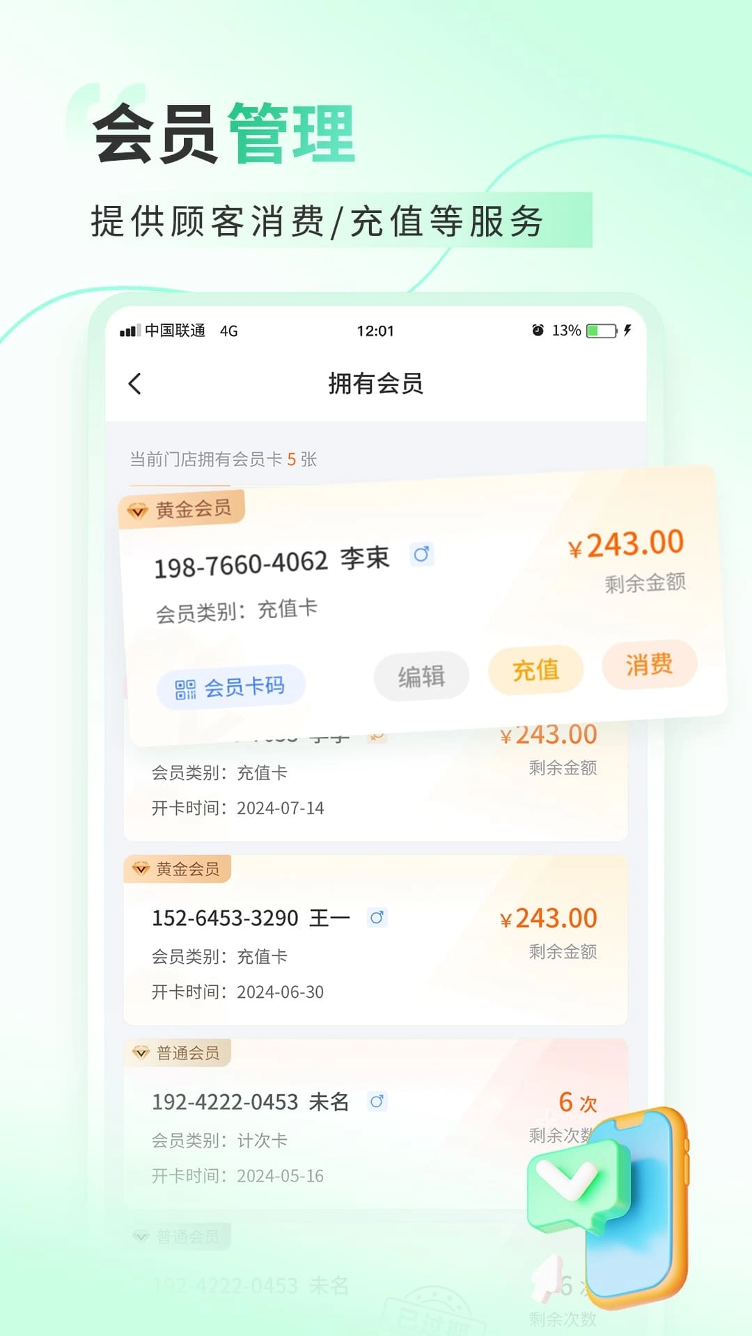 您能够随时查看会员的消费状态、积分以及余额等相关信息,进而及时对您的折扣政策进行调整。