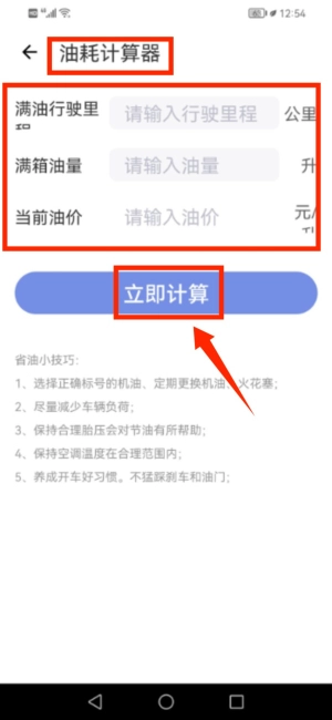 使用油耗计算器输入数据得出燃油消耗量。
