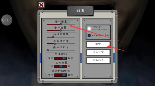 2、点击设置,可以设置音效音量、音乐音量、灵敏度、语言等;