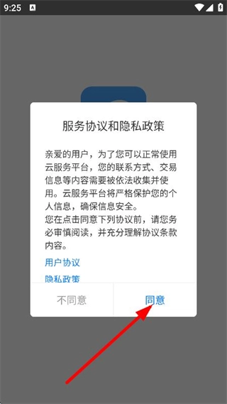 在服务协议与隐私政策的弹窗里,点击同意按钮,即可进入登录页面。