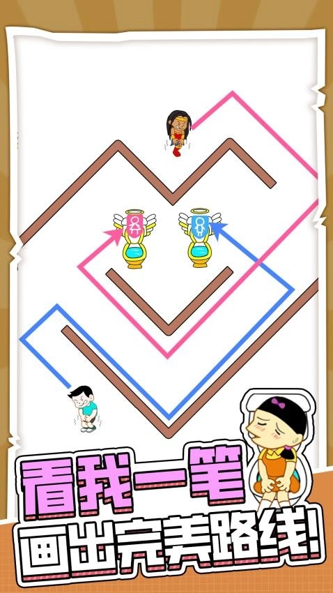 这是一款带点“味道”的趣味画线游戏,多种模式的闯关难度会不断提升,现在正是考验你观察能力与操作能力的时刻!滑动屏幕就能画出线条,你有信心帮助内急的小伙伴闯过重重难关,成功找到厕所吗?