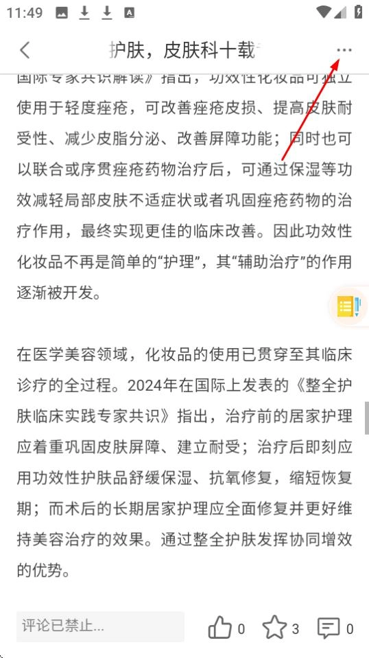 在【医学护肤】板块下的【化妆品资讯】栏目里,点击标题为【科学护肤,皮肤科十载专业历程】的文章,就能浏览其详细内容。