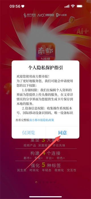在个人隐私保护指引弹窗,点击同意,进入首页。