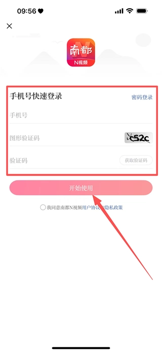 输入手机号码与验证码,先获取验证码再输入,以此完成账号登录流程。
