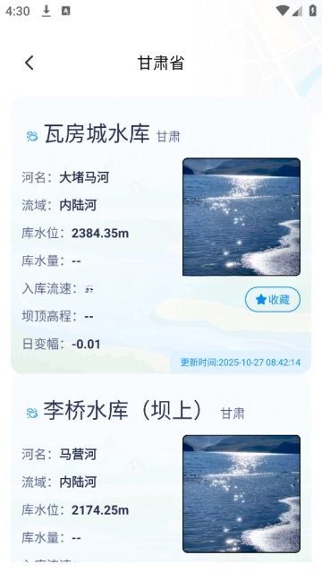 可以帮你收藏常用水库与江河的数据,让用户能无忧追踪,随时完成实时收藏。