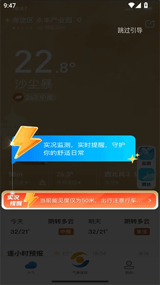 实时掌握您当前位置的天气预报与空气质量信息,便捷查看天气实况及24小时数据。