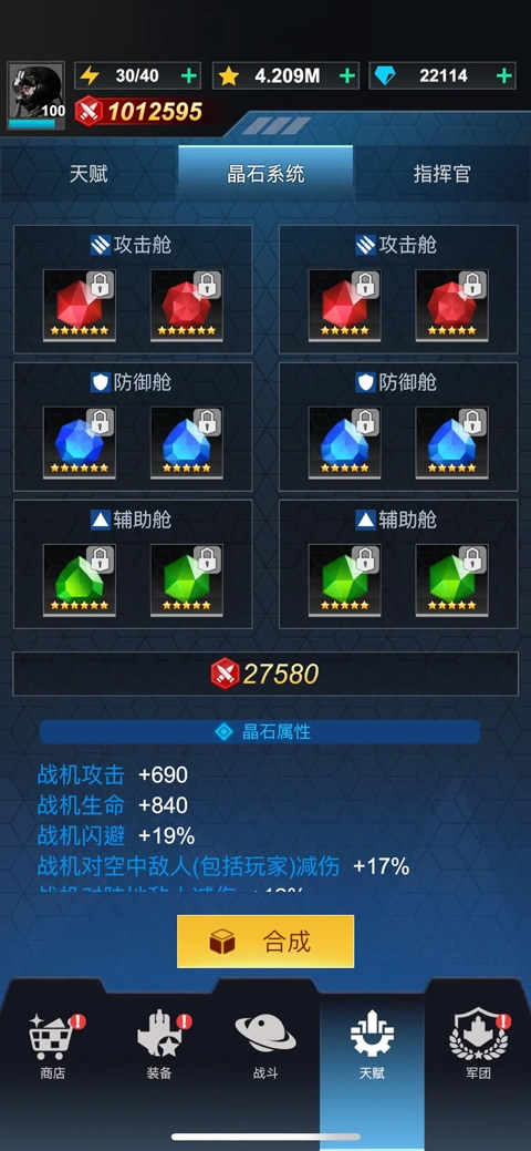 红色晶石要选主炮和导弹加成最高的,蓝色晶石优先选减伤和闪避属性的,绿色晶石则选对空与对地相关的!