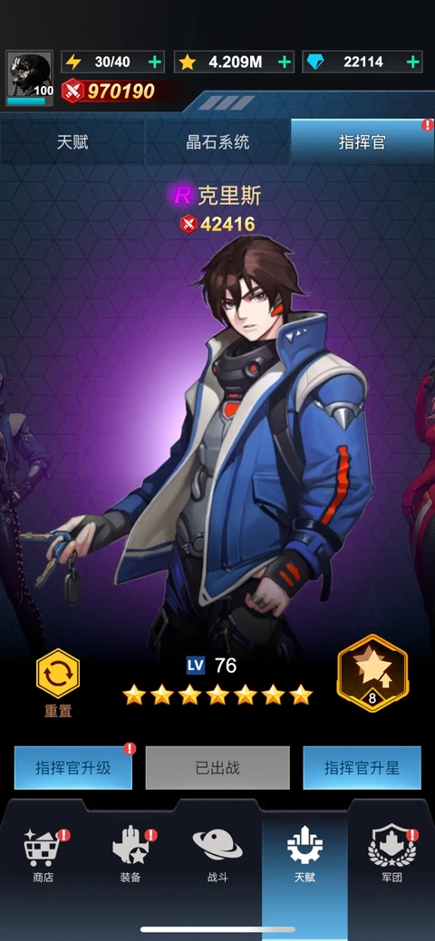 指挥官肯定得派克里斯上场,满星状态下刷取星星能获得30%的加成。