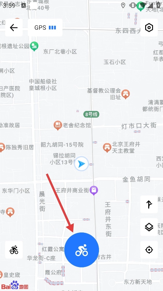进入地图界面后,点击【骑行】按钮,软件会借助GPS功能,对骑行的路线和相关数据进行记录。