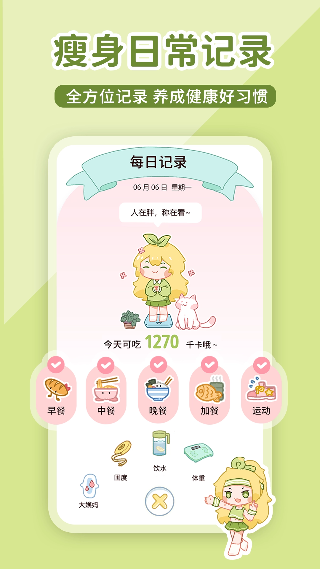 还能帮您记录每日的空腹状态与饮水情况,只需打开手机就能随时查看。