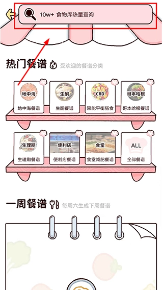 在“食谱”页面的顶部输入你想查询的食物名称,像“鸡蛋”这样的例子就可以。