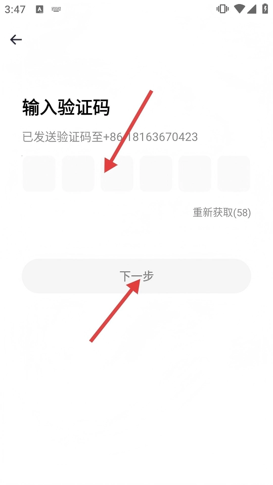 输入收到的验证码,点击【下一步】按钮完成验证,之后就可以进入密码设置的步骤了。