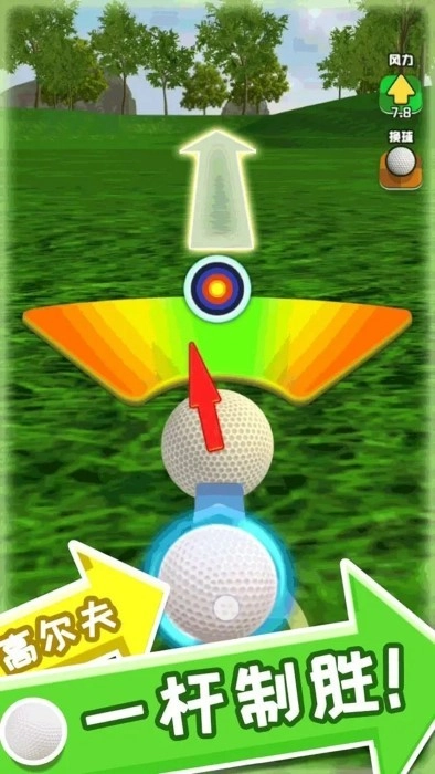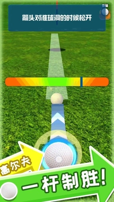 玩家通过点击屏幕来控制击球的力度与方向,精准地把高尔夫球打进球洞,以此完成挑战任务。