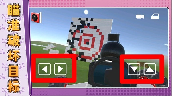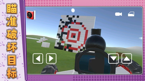 射击界面配备了方向与角度调节按钮,助力玩家精准把控瞄准和发射操作,从而有效命中目标方块,顺利完成破坏挑战。