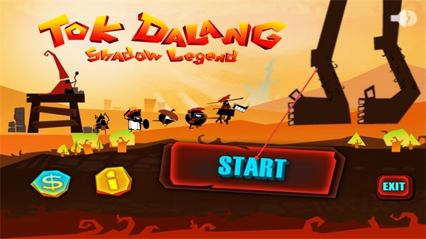进入剪影塔防影子传说游戏主界面后,点击START按钮即可开启游戏,也能通过EXIT退出界面,随后准备进入游戏关卡。