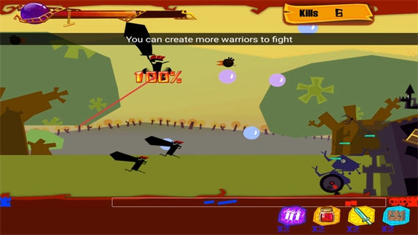 战斗时按照提示创建更多战士参与作战,通过击败敌人来积累Kills计数,以此推动战斗进程。