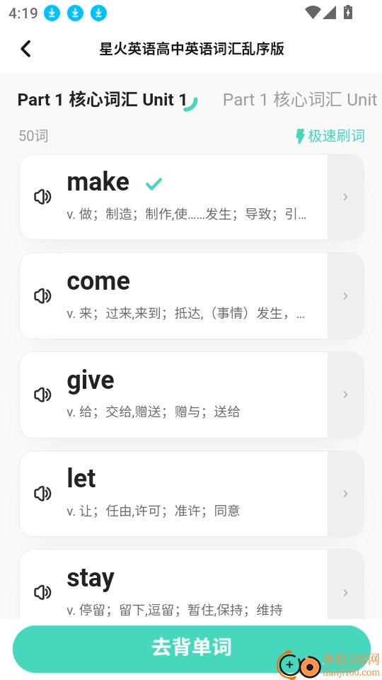 进入单词列表后,点击“去背单词”按钮即可进入下一步操作。