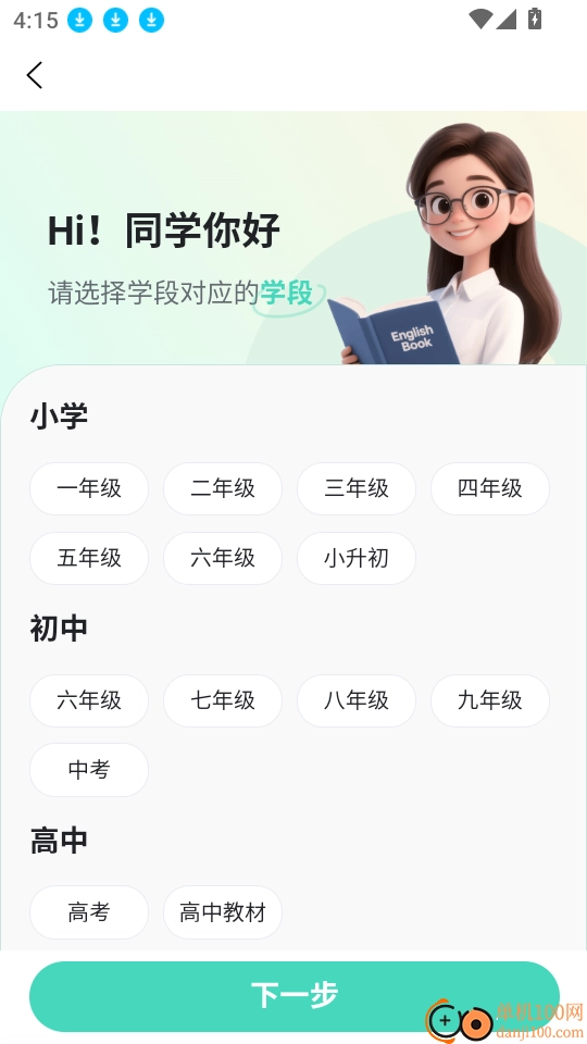 接下来就可以选择所需学段的英语单词,在按学段完成分类选择后,点击“下一步”按钮以继续后续操作。