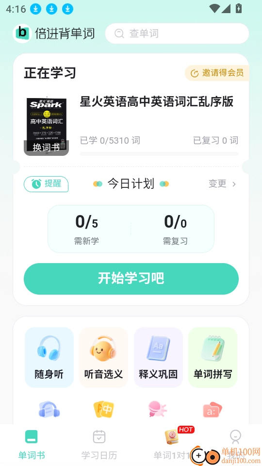 在软件的单词书界面里,点击“开始学习吧”按钮就能进入下一步操作。