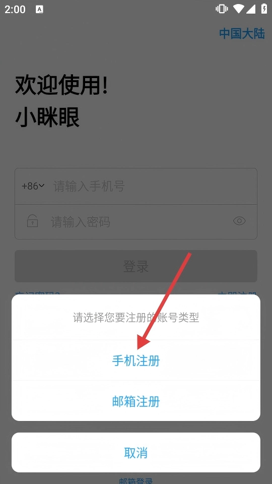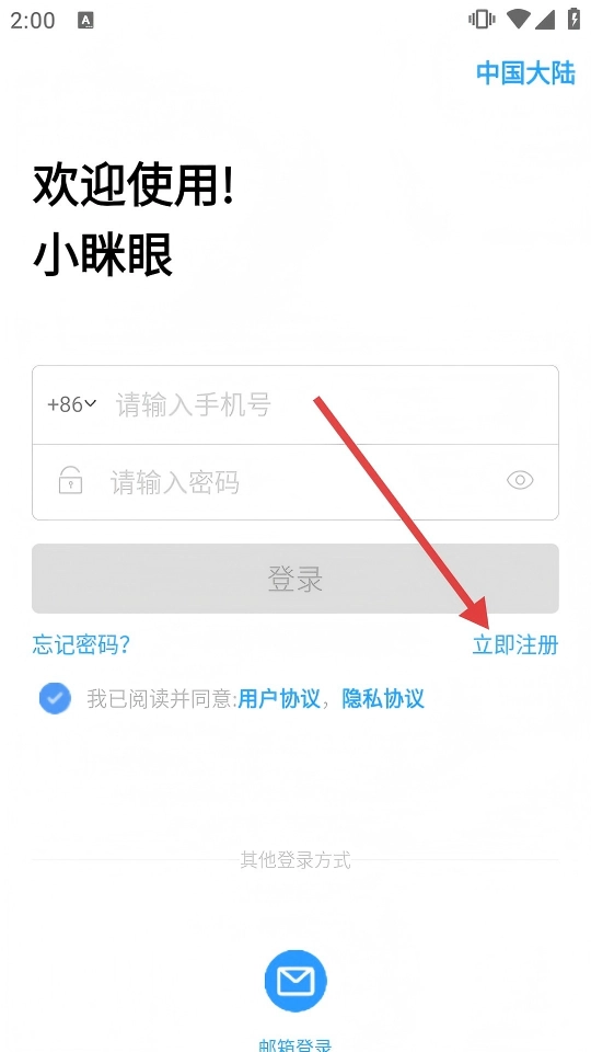 在输入收到的短信验证码后,点击【注册】按钮,即可完成小眯眼的注册流程。