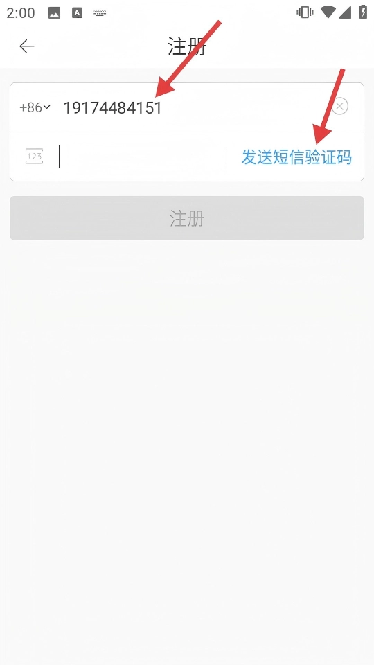 在手机注册信息填写页面输入手机号,然后点击发送短信验证码按钮。