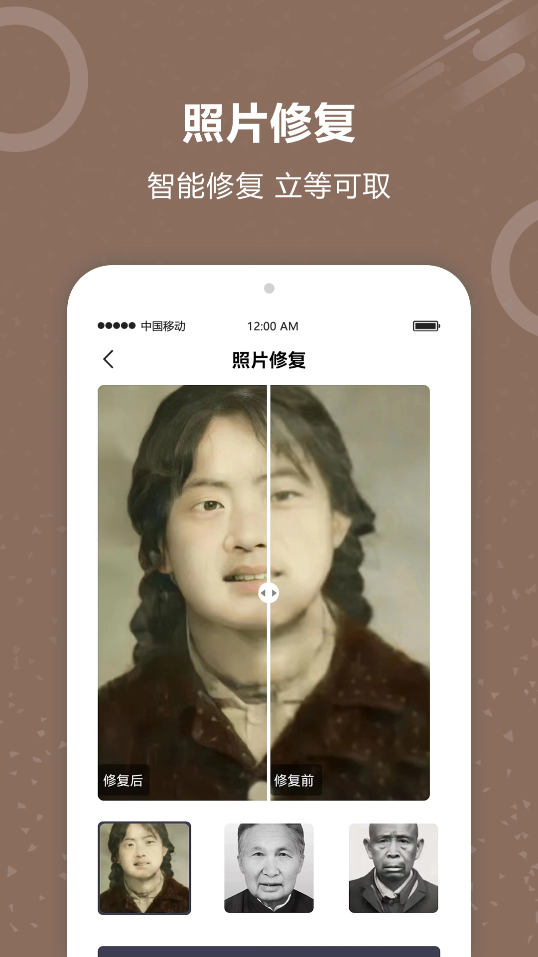 整个修复过程采用“一键式”操作流程,不需要用户具备专业的修图知识,只需上传照片,耐心等待1到2分钟,就能得到修复后的结果。