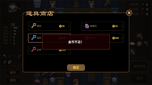 这个游戏难度不算高,前期不用费脑筋,主要堆防御就行,不用堆得太夸张,刚好能抗住不被破防就可以了。到了后面阶段,就有必须堆攻击力、消耗金币或者购买钥匙的环节了(这游戏的钥匙其实真的不太够用,尽管官方一直说够?)