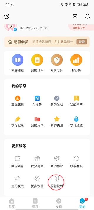 2、在个人中心下面有一个更多服务,选择里面的“监督投诉”。