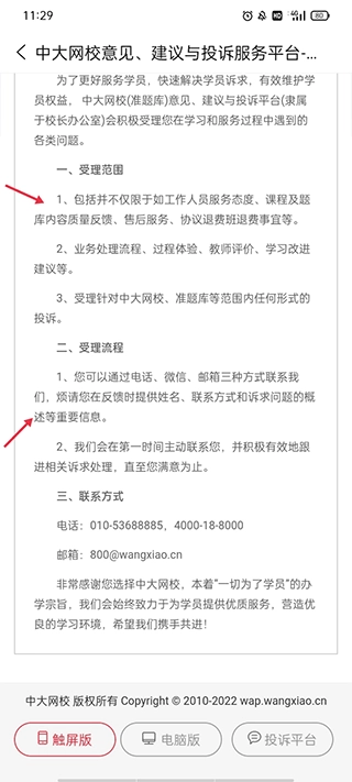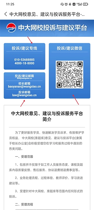 3、点进去之后可以看到有三种投诉方式,一种是打投诉专线,一种是向投诉邮箱发送邮件,最后一种就是添加微信,向微信里的工作人员反馈。