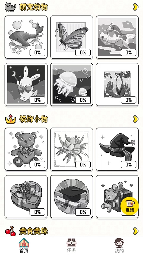 值得一提的是,像素小画家这款游戏不仅为玩家准备了丰富多样的游戏关卡,还提供了琳琅满目的图案素材,所有图稿均由插画师精心挑选制作而成,适合各个年龄段的玩家体验。玩家可以选择不同的图案玩法来舒缓压力,既能帮助放松身心,又能锻炼观察能力与创造力,感兴趣的朋友们可千万别错过啦。