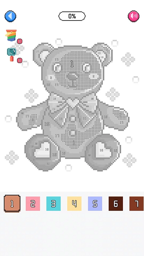 像素小画家游戏玩法简单易懂,操作也轻松好上手。玩家只需挑选心仪的图案,依据方块格子里的数字找到对应的正确颜色,通过点击相应色块,逐步将画面填涂完整,就能创作出有趣的像素画啦。