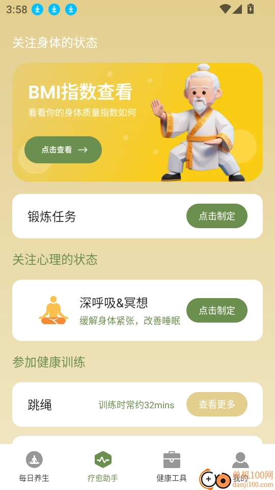 进入软件的每日养生界面后,在底部菜单栏找到“疗愈助手”按钮并点击,即可进行下一步操作。
