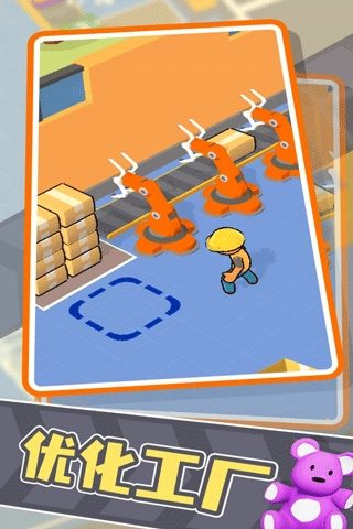 想了解工厂的运作流程吗?不妨试试异星工厂手机版中文版!这是一款充满趣味的模拟经营游戏,采用3D卡通风格打造,细腻的3D场景搭配精致画面,再加上休闲有趣的经营玩法与轻松的背景音乐,能为玩家带来极佳的游戏体验。 在游戏里,你将化身工厂厂长,从白手起家开始,亲手操作机器,包揽从制作、打包、搬运到最终装运的全部流程——每完成一次客户交付,就能收获丰厚报酬。刚进入游戏时,你需要把娃娃搬运到机器打包处,再将打包好的娃娃装上货车;货车装满后便会发车,紧接着又会有一辆空车等待装载。 但别以为游戏就这么简单!每台机器的填料速度和运输速度都有上限,商品堆积到一定程度机器就会停止运作;而你单次能搬运的货物数量也有限制。若想提升效率,就得升级填料臂速度、运输臂速度、承载能力、传送带速度和运输能力,还可以购买运输臂或无人机帮忙搬运。一步步发展,最终打造出实力雄厚的大型工厂吧!