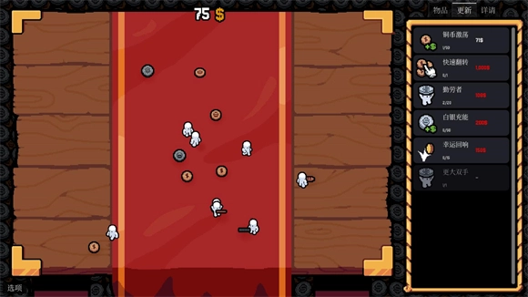 你拥有的硬币越多,就能抛得越多。购买升级,使它们抛掷得更快并产生更多收益。探索不同硬币类型之间奇妙的互动与意想不到的协同效应。