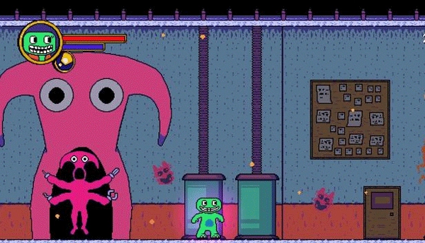5、四处跳跃,探索疯狂的关卡,射击并躲避敌人。