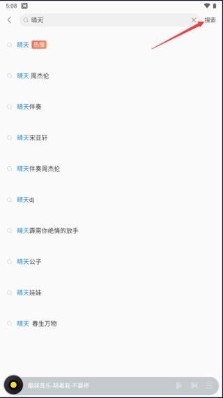 1、在搜索框中输入你想查找的歌曲名称,接着点击最右边的“搜索”按钮。