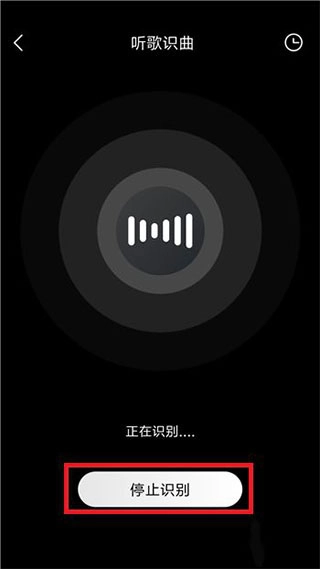5、当歌曲播放结束后点击界面中的【停止识别】,这样系统就会识别刚才我们播放的歌曲。