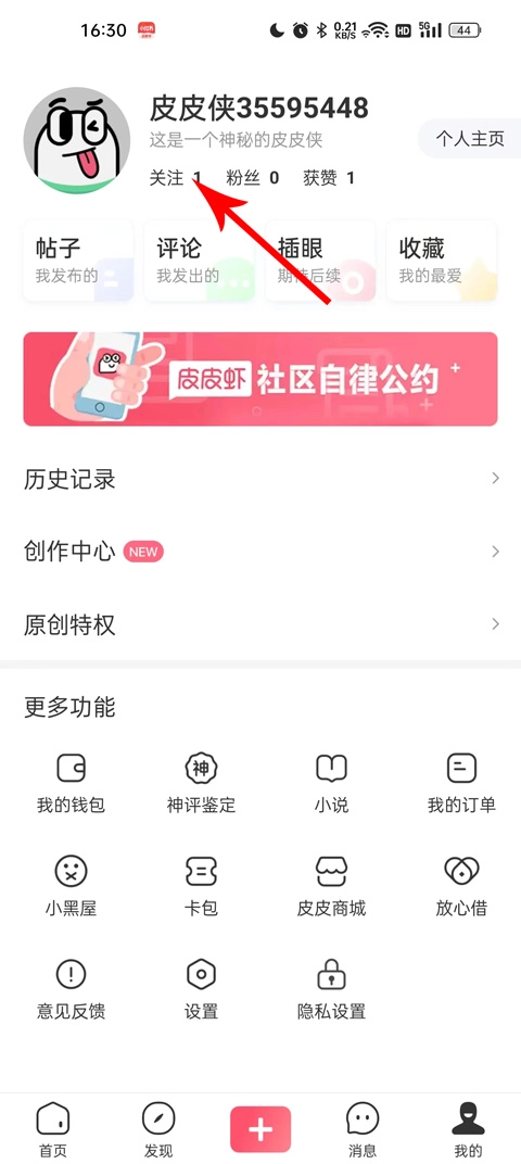 3、进入到我的板块之后,个人头像下方有个关注、粉丝、获赞,三个板块,找到关注点击进入;