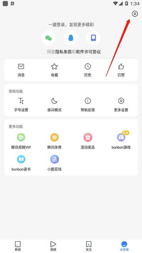 1、打开腾讯新闻,点击首页右下方的【我的】。